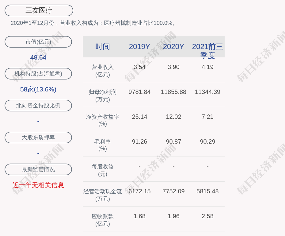 2020年1至12月份,三友医疗的营业收入构成为:医疗器械制造业占比100.0%。