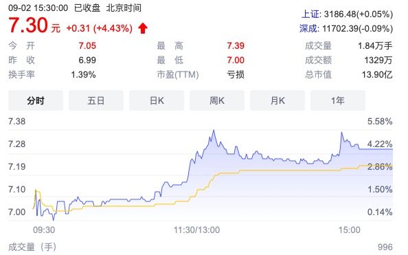 ▲*ST紫晶2日收报7.30元/股,总市值仅13.90亿元