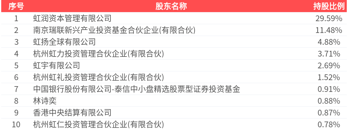 公司股东户数为2.20万户,前十大股东持股数量为2.30亿股,占总股本比例为57.33%,前十大股东持股情况如下:
