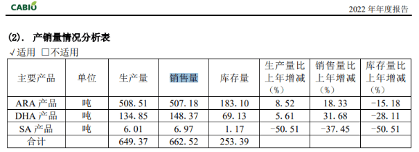 而根据AlliedMarket Research数据显示,预计到2022年全球DHA市场销量为22.96万吨,嘉必优2022年DHA产品的销量为148.37吨,市占率不足1%。公司在IPO招股书中也曾提示过主要产品ARA和藻油DHA市场容量相对有限的风险。