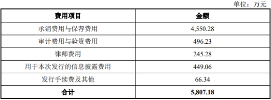 瑞松科技发行费用总额为5807.18万元,其中保荐机构广发证券股份有限公司获得承销费用与保荐费用4550.28万元。