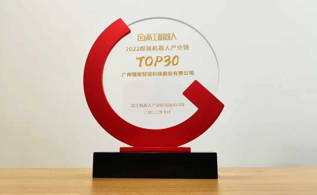 2022年10月28日,广州瑞松智能科技股份有限公司在高工机器人、高工机器人产业研究所联合组织的“2022焊接机器人产业链TOP30”评选活动中入选2022年焊接机器人产业链TOP30榜单。这是对瑞松科技在焊接领域的技术、工艺及装备的先进性、创新性和领先性再一次肯定,充分肯定了瑞松科技在焊接行业内的重要地位及在市场上获得的广泛认可。