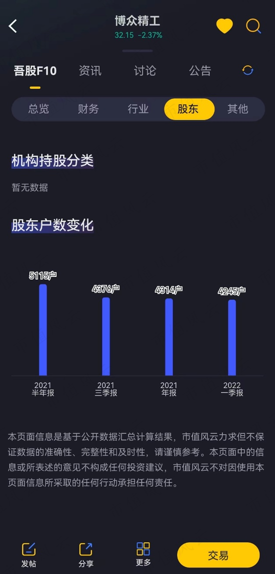 首先,风云君打开了最新版的市值风云APP,搜索博众精工,来到吾股F10的股东一栏。