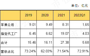 博众精工对指定代工厂的营收由2020年的6.62亿,增加到2021年的19.07亿,是之前的三倍。2022年一季度也是如此。