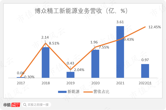 2021年,博众精工新能源业务营收上升至3.61亿,占总营收的9.43%。
