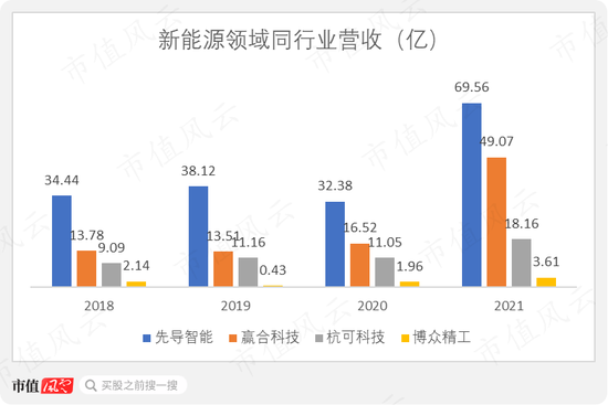 由于刚起步,博众精工新能源业务的营收规模十分弱小,连同行业竞争者营收的零头都不到。