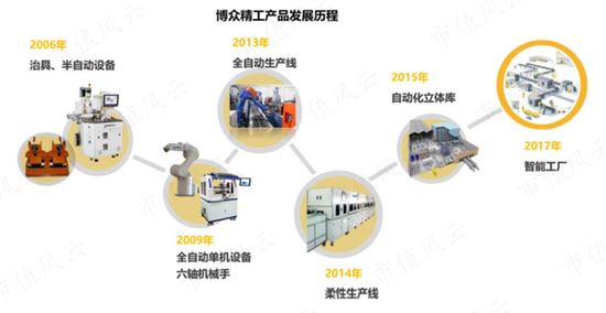 博众精工成立于2006年,起家于生产治具、半自动设备,随着技术水平的提升,2013年以后,公司拥有了全自动生产线、柔性生产线。
