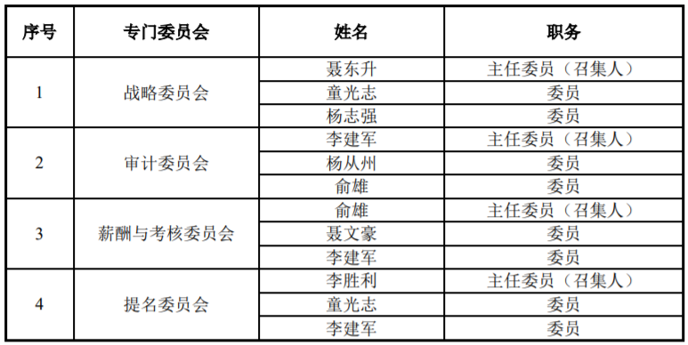 结合此前公司发布的一系列相关公告,公司第四届董事会及专门委员会委员、第四届监事会、高级管理人员以及证券事务代表最新组成情况如下: