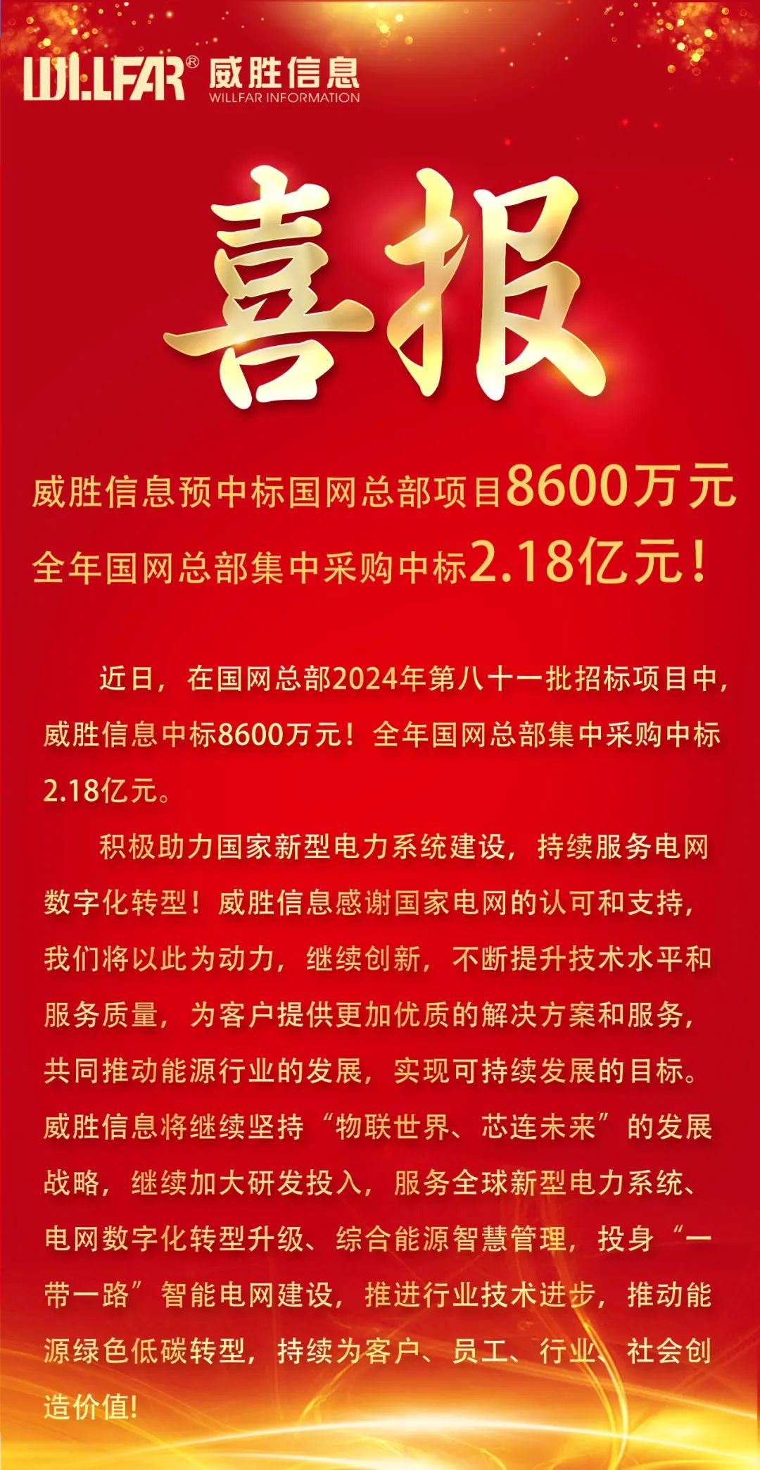 国网集采圆满收官!威胜信息2024年国网总部集采招标项目中标2.18亿元!