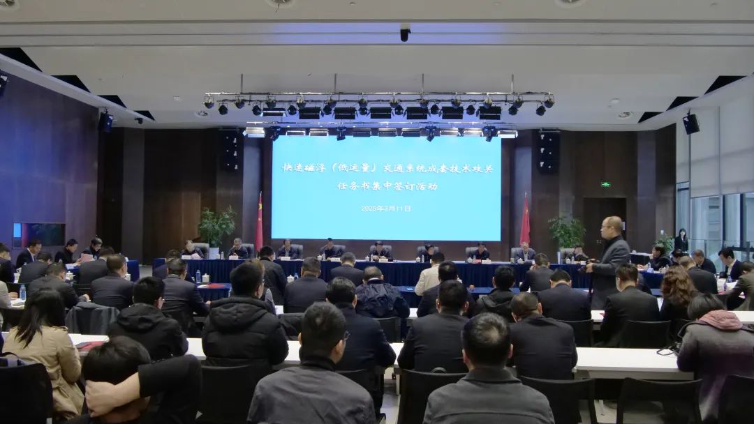 3月11日上午,快速磁浮交通系统成套技术攻关任务书集中签订仪式在湖南轨道集团举行。省人大常委会党组副书记、副主任、磁浮交通产业链链长张剑飞出席,省人大财经委、省发改委、省科技厅、省工信厅、省国资委相关负责人,威胜信息总裁李先怀、行业专家和高校企业代表参加仪式。