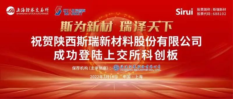 2022年3月16日,陕西斯瑞新材料股份有限公司(证券代码:688102)在我所举行线上上市仪式。