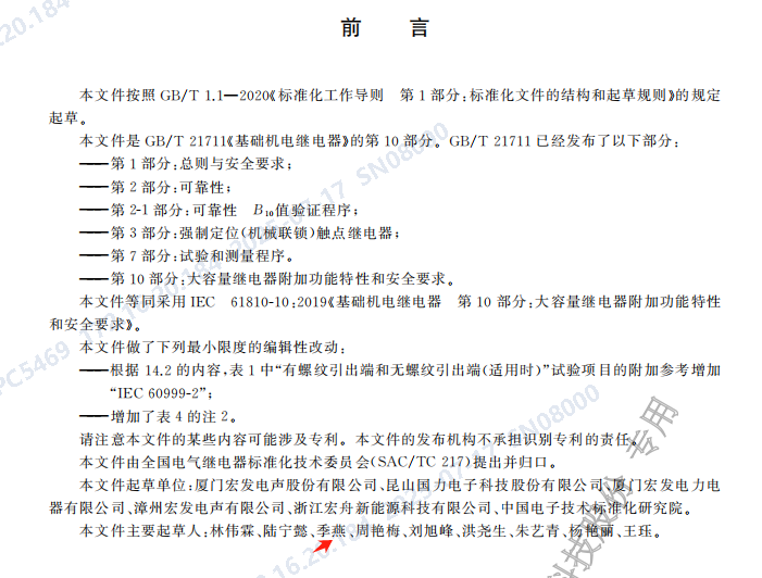 国力股份研发部副总监、国家标准委员会专家季燕女士作为主要起草人之一参与该标准的编写工作。标志着国力股份在继电器领域的技术实力得到了国家级的高度认可,同时也为行业的规范化发展贡献了力量,更凸显了国力股份在高端继电器研发与标准化建设方面的领先地位。