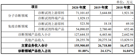 诺唯赞既制备分子诊断试剂与免疫诊断试剂的上游原料酶、抗原、抗体,亦生产及销售分子诊断试剂终端产品与免疫诊断试剂终端产品。对应销售收入如下表所示: