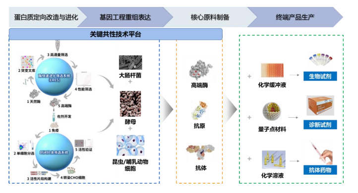 南京诺唯赞生物科技股份有限公司成立于2012年,是一家围绕酶、抗原、抗体等功能性蛋白及高分子有机材料进行技术研发和产品开发的生物科技企业,依托于自主建立的关键共性技术平台,先后进入了生物试剂、体外诊断业务领域,并正在进行抗体药物的研发,是国内少数同时具有自主可控上游技术开发能力和终端产品生产能力的研发创新型企业。
