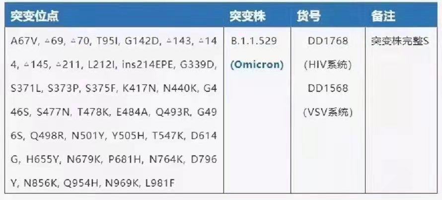 表1.诺唯赞新冠病毒“Omicron”突变株突变信息表