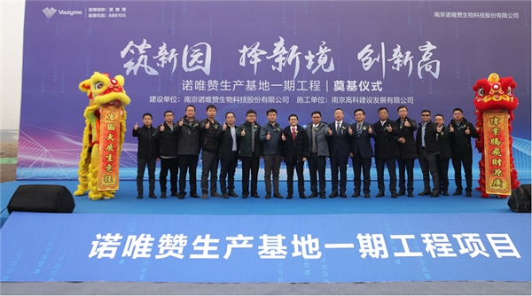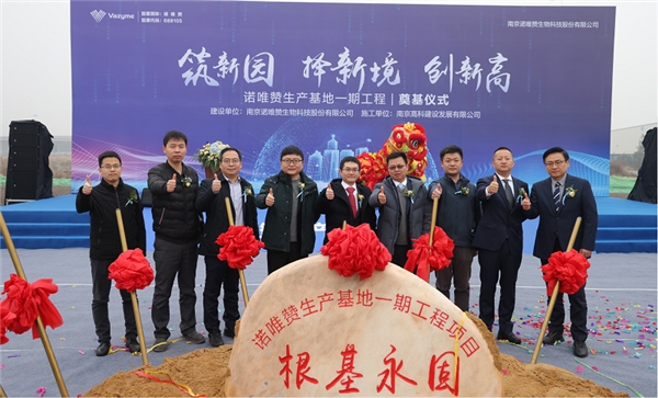 12月9日,诺唯赞生产基地一期项目开工建设奠基仪式在栖霞区龙潭举行。南京诺唯赞生物科技股份有限公司董事长、总裁曹林、副总裁徐晓昱、张力军、唐波、吴伟等,嘉宾即施工单位代表南京高科股份有限公司董事、总裁陆阳俊、副总裁张仕刚等领导出席仪式。
