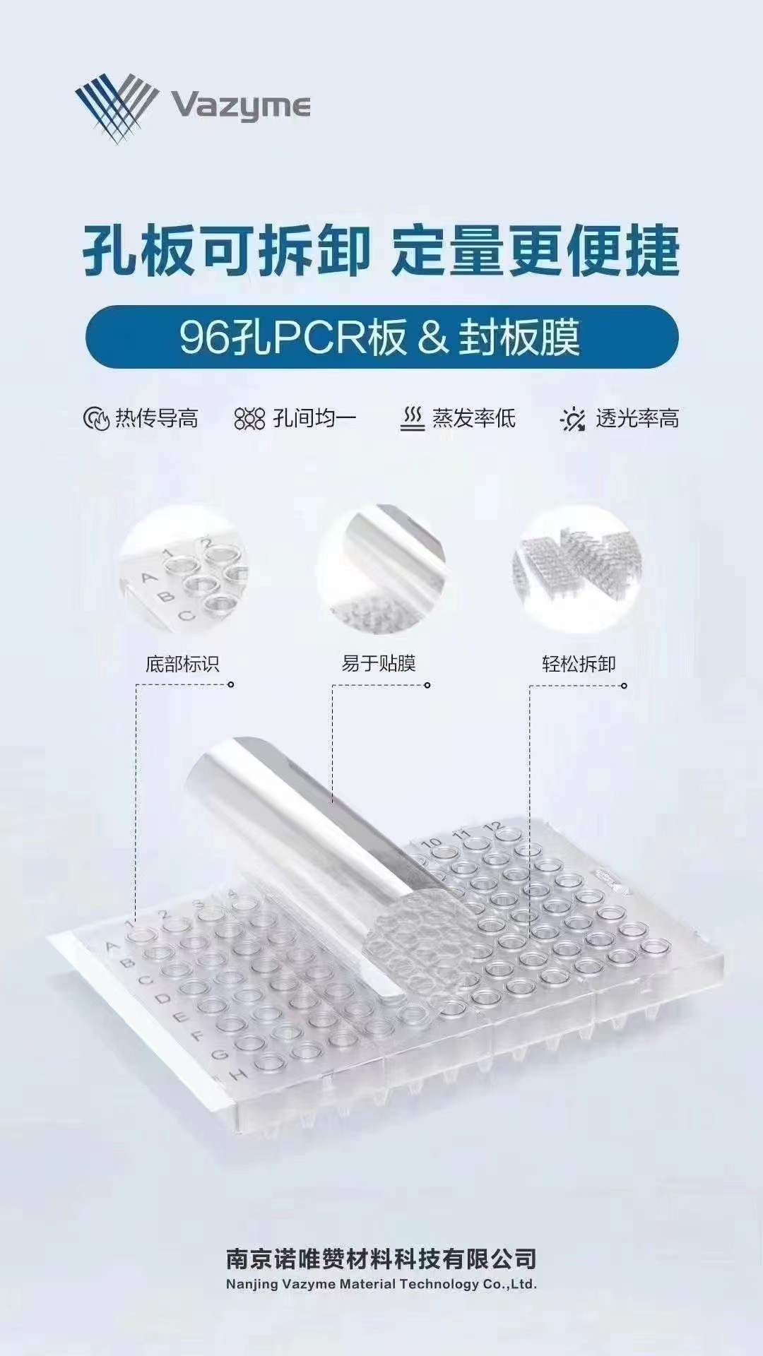 同时近日,南京诺唯赞生物科技股份有限公司全资子公司诺唯赞材料科技96孔PCR板,封板膜上市。