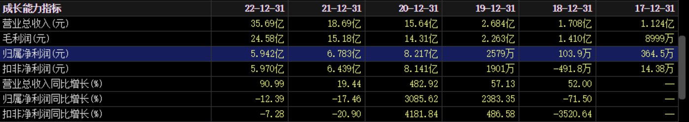 2020年,诺唯赞实现的营业收入达15.64亿元,归母净利润为8.22亿元。2019年,诺唯赞的营收、归母净利润仅为2.69亿元、0.26亿元。2021年、2022年诺唯赞的营业收入依旧保持高增态势,分别为18.69亿元、35.69亿元。