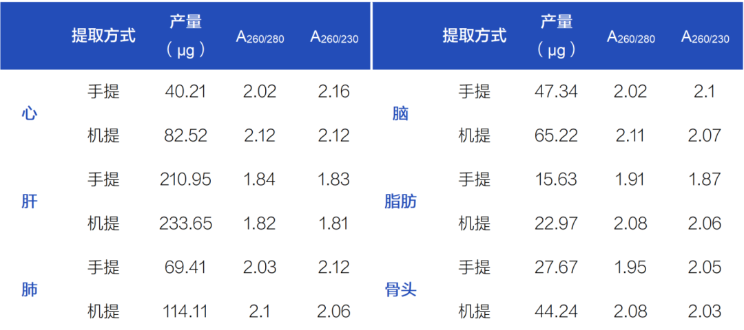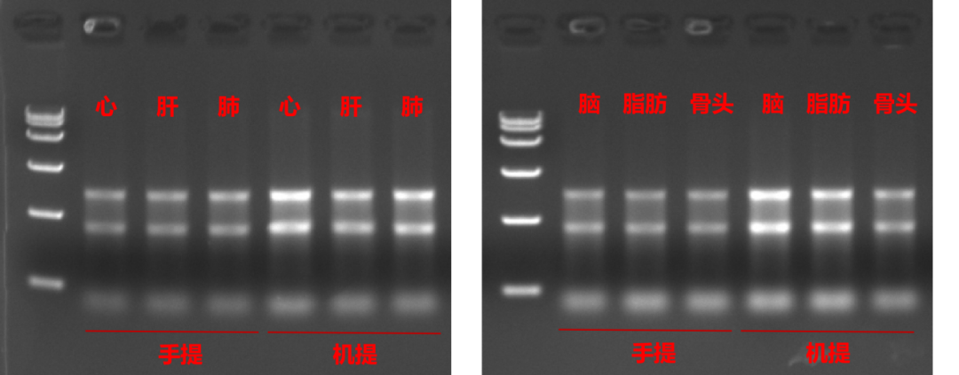可靠的数据:机提结果无论质量还是浓度均优于手提结果