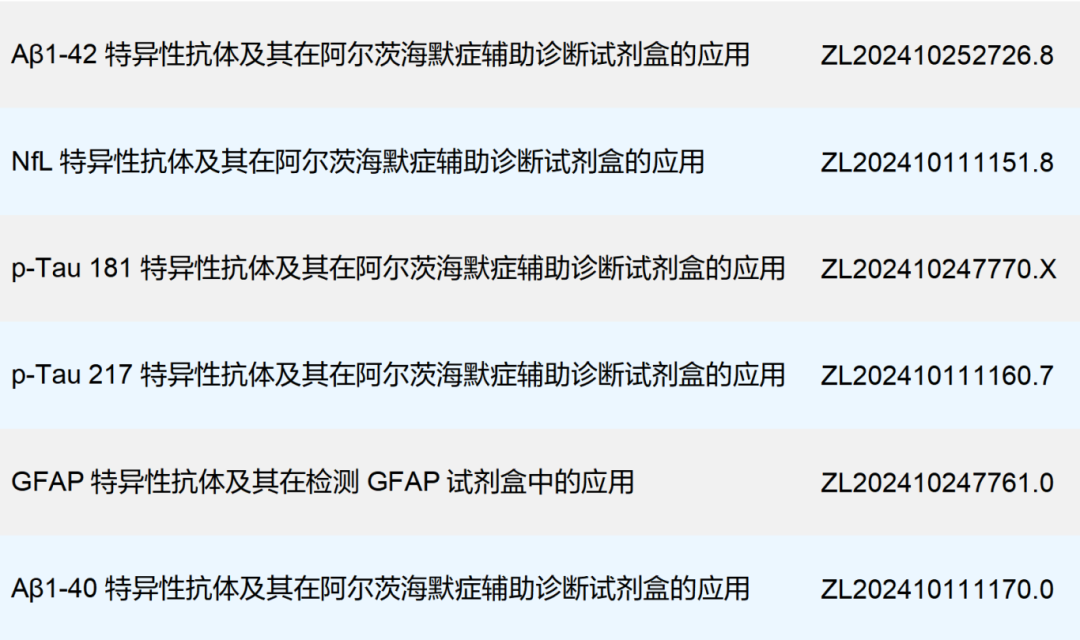 在医疗领域,诺唯赞同样展现出了强大的研发实力。今年4月,诺唯赞自主研发生产的阿尔茨海默病六项血液检测试剂盒获批我国医疗器械注册证,其中Aβ42/40为化学发光法国内首家、p-Tau217为国内独家、NfL是国内首家。诺唯赞也同步针对6个指标的特异性抗体进行了专利布局,并顺利获得专利授权。这些专利成果不仅为AD的早期诊断提供了更为便捷、准确的方法,也为后续的治疗方案提供了依据。
