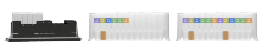 V2:预封装试剂条和试剂板搭配,无需接触有毒试剂,无通量限制,搭配仪器快速提取1-32/96个样本。