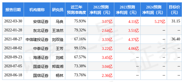 证券之星数据中心根据近三年发布的研报数据计算,中泰证券王芳研究员团队对该股研究较为深入,近三年预测准确度均值高达99.15%,其预测2022年度归属净利润为盈利3.22亿,根据现价换算的预测PE为24.63。