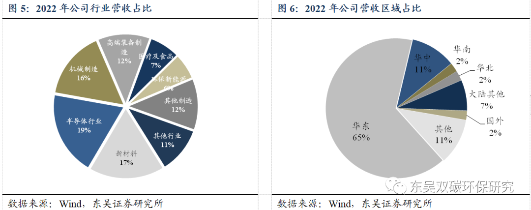 公司下游行业领域广泛,结构层次稳定。凭借雄厚实力及优异质量,公司获得众多新兴行业客户的认可,2022年所属新材料、半导体、机械制造客户分别贡献公司17%、19%、16%营收。公司与众多集成电路、液晶面板、LED等知名客户建立长期稳定合作,保障公司业务稳定性。此外,公司凭借稳定供应保障能力,较好的满足了单体气体需求量较小,分布较为分散的中小型客户。在各个行业聚集了大量的拥趸客户,保证公司的持续稳定发展。