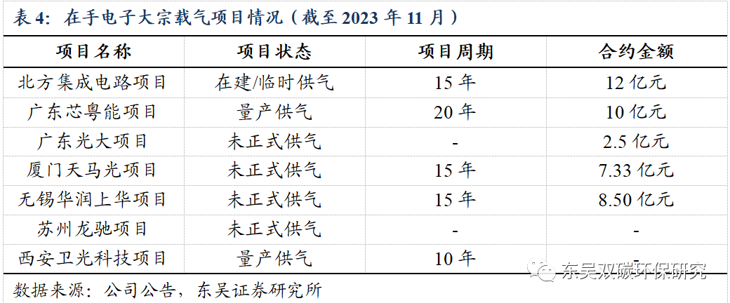 5)公司于2023年4月获得无锡华润上华科技有限公司电子大宗载气项目订单,合约期限为15年,合约金额约8.50亿元,标志了公司实现对成熟量产晶圆代工厂的突破。