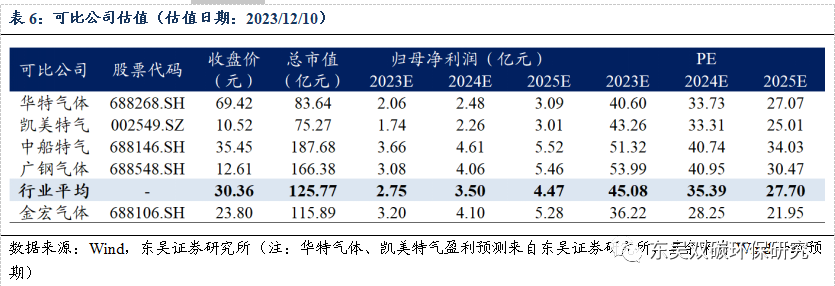 工业气体又可细分为大宗气体及特种气体,我国大宗气体市场主要参与企业包括金宏气体、广钢气体、凯美特气等。特种气体生产企业包括金宏气体、华特气体、雅克科技、南大光电、中船特气等。我们认为公司所处的工业气体市场空间充足,公司积极布局空分产能提高大宗气体盈利能力,以技术研发为核心在特气国产浪潮下迎高增。公司产能技术优势突出巩固龙头地位,产能投放在即将实现快速增长,首次覆盖,给予“买入”评级。