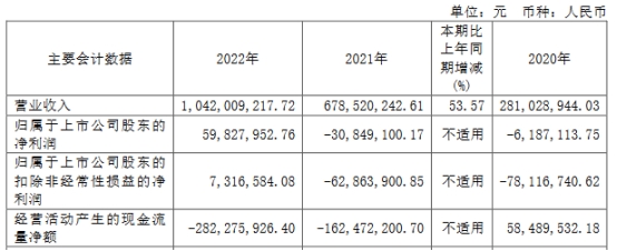 2021年、2022年,安路科技经营活动产生的现金流量净额分别为-1.62亿元、-2.82亿元。