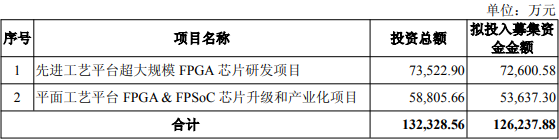公司首次发行募集资金总额为13.03亿元,扣除发行费用后,募集资金净额为12.01亿元。安路科技最终募集资金净额比原计划多2.01亿元,公司2021年11月9日披露的招股书显示,公司拟募集资金10.00亿元,分别用于新一代现场可编程阵列芯片研发及产业化项目、现场可编程系统级芯片研发项目、发展与科技储备资金。
