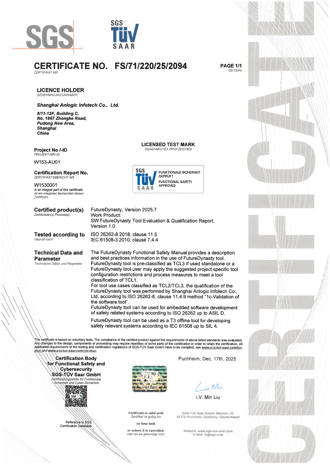 安路科技副总经理谢丁表示:“此次通过国际权威认证,意义重大。这不仅是对我们技术实力的认可,更是安路科技对安全、可靠交付方面一以贯之的核心追求。未来,安路科技将凭借自身优势,为国内汽车电子、工业控制等关键领域的创新,提供坚实可靠、自主可信的开发工具支撑,全力协助客户应对智能化高可靠时代的挑战,加速产品上市进程。”