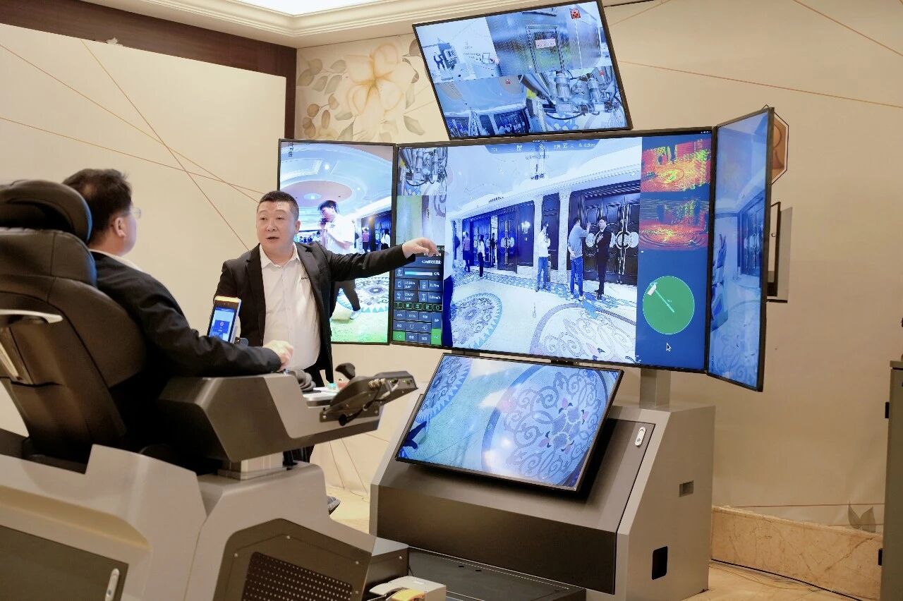 会议期间,品茗科技展出的塔机远程智能驾驶辅助系统吸引了与会代表的广泛关注。该系统融合了5G低延时通信、多模态人机交互、高精度定位与自动路径规划等核心技术,实现了塔机地面远程驾驶、多机协同、吊钩防摇摆等功能,在提升施工安全与作业效率方面展现出显著成效。
