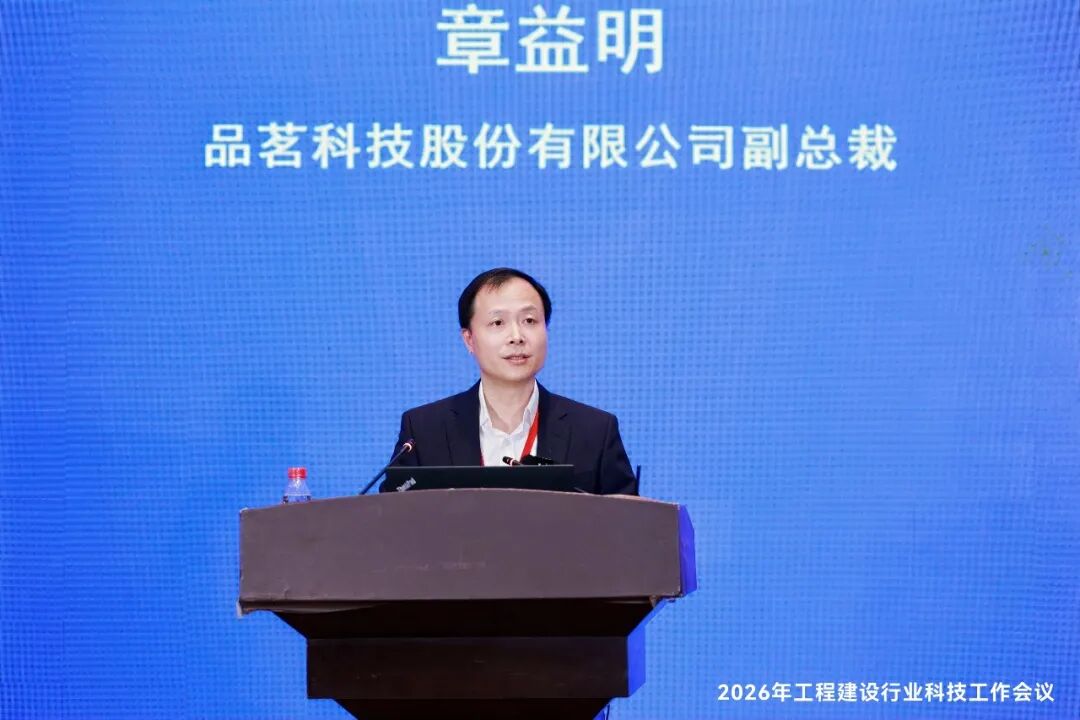 3月29日至30日,由中国施工企业管理协会主办的“2026年工程建设行业科技工作会议”在杭州召开。本次会议以“强化科技创新管理,提升企业创新体系整体效能”为主题,汇聚了行业专家、协会领导及众多工程建设企业负责人,共同探讨科技创新赋能工程建设行业高质量发展的路径与前景。品茗科技股份有限公司副总裁章益明应邀出席,并发表题为《AI+建造全链路的赋能探索》的主题演讲。