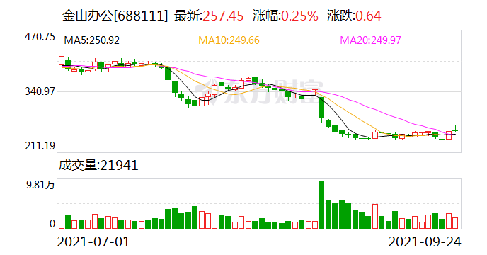 中信证券9月24日发布研报,维持金山办公买入评级,目标价位431元。截至报告日,公司最新收盘价为256.81元,较目标价有67.83%的上行空间。中信证券预测,金山办公2021年归母净利润10.72亿元,同比增长22.08%。