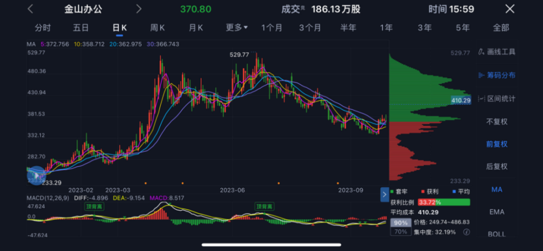 也是在这个阶段,金山办公的股价开始一路高涨至529.77元每股。