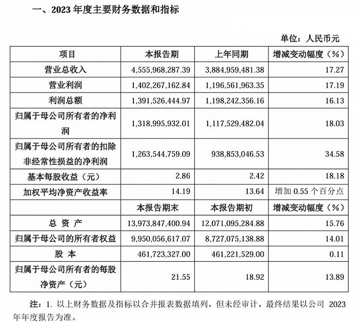 2023年,金山办公实现营业收入45.56亿元,和上年的38.85亿元相比增长17.27%;实现归属于母公司所有者净利润13.19亿元,和上年的11.18亿元相比增长18.03%;实现归属于母公司所有者扣非后净利润12.64亿元,同比增长34.58%。