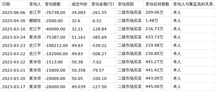 上交所公开信息显示,6月6日,联测科技董事史江平在二级市场买卖公司股票,减持股数7.67万股,成交均价34.08元,变动金额261.55万元,变动后持股数为209.06万股。