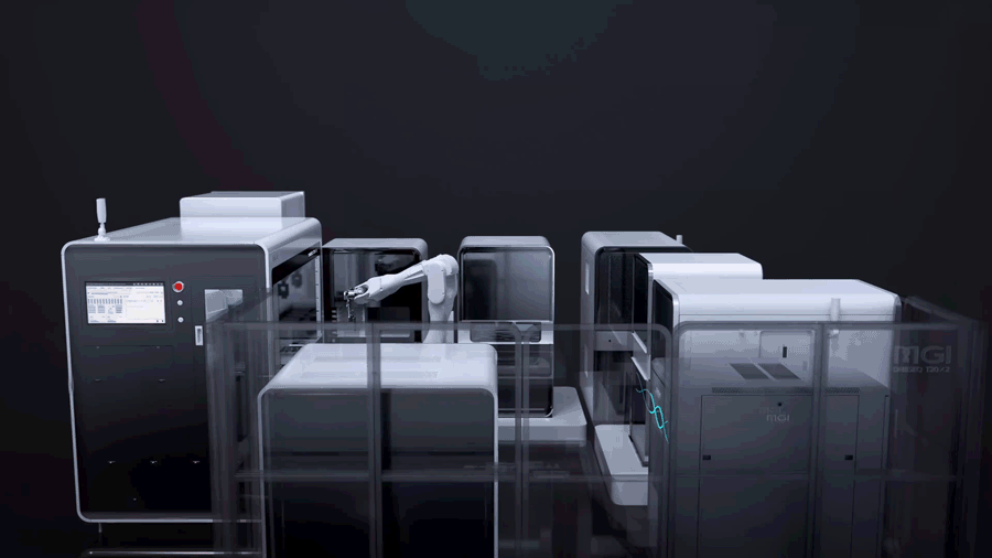 在DNBSEQ-T20×2所构建的“超级测序工厂”中,配备了开放式的并行处理系统,它可以在短时间内将测序生产规模提升至新的量级,同时支持6张超大尺寸的测序载片上机运行,每张测序载片既能独立运行不同的测序读长和测序应用,还能够支持混合测序,最大程度提高测序效率和测序规模。