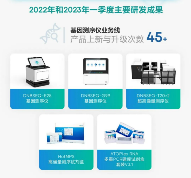 比如,2022年和今年一季度,华大智造针对市场需求的产品升级与技术转化成果,在基因测序仪业务线上累计达到惊人的45次。新机型的推出与原有机型的升级,都是其终端产品市场竞争力提升的表现。
