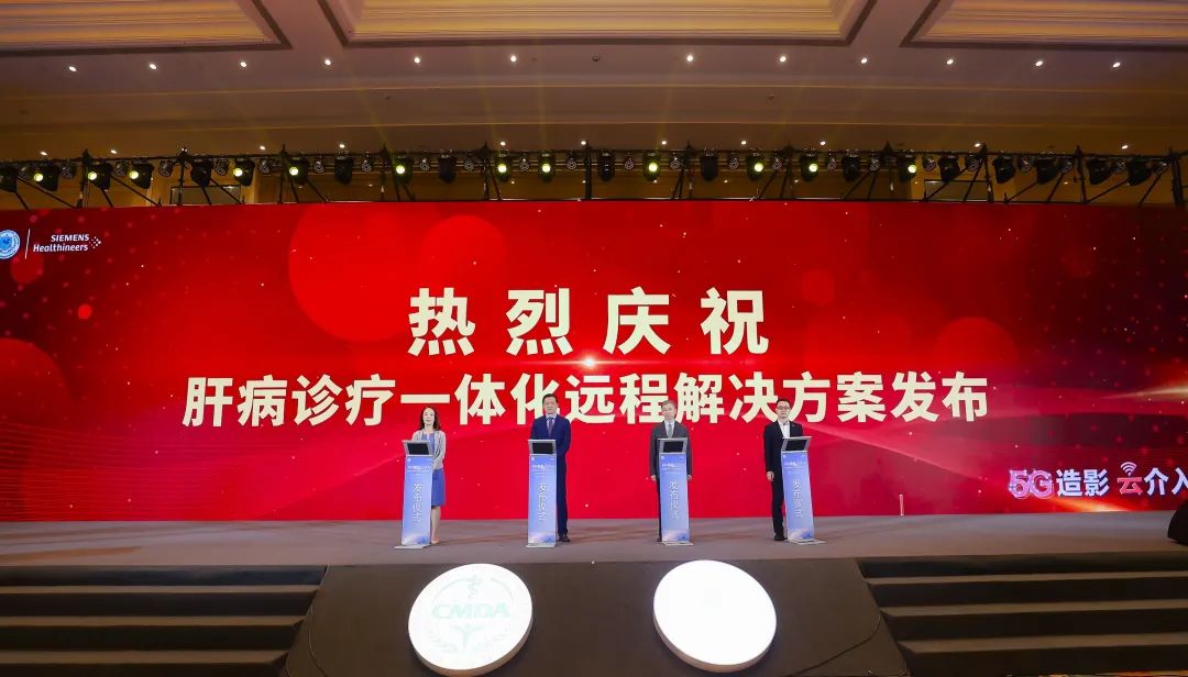 中国医师协会超声医师分会何文会长,西门子医疗大中华区超声事业部总经理马进先,瓦里安介入远程解决方案中国区总经理钱胜来,华大智造云影副总经理王景出席发布仪式。