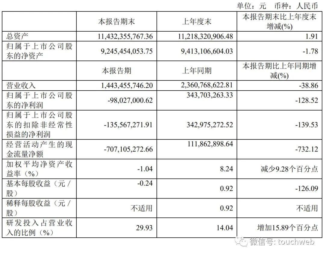 华大智造2023年上半年净亏损为9803万元,上年同期的净利为3.4亿元;扣非后净亏损为1.36亿元,上年同期的扣非后净利为3.43亿元。