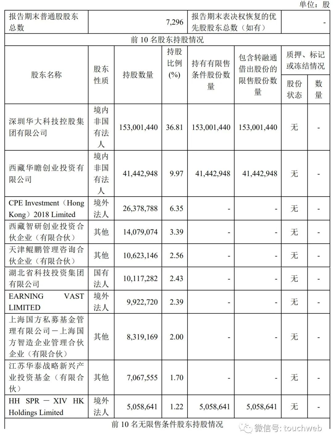 湖北省科技投资集团有限公司持股为2.43%,EARNING VAST持股为2.39%,上海国方私募基金管理有限公司-上海国方智造企业管理合伙企业(有限合伙)持股为2%;江苏华泰战略新兴产业投资基金(有限合伙)持股为2.03%,HH SPR - XIV HK Holdings Limited持股为1.22%。