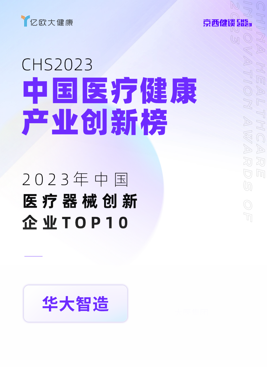 近日,由中国产业发展促进会指导、亿欧大健康主办的京西健谈CHS 2023第八届中国大健康产业升级峰会在北京召开。亿欧大健康重磅发布“CHS 2023中国大健康产业榜”系列榜单,华大智造入选“CHS 2023中国医疗健康产业创新榜”医疗器械创新企业TOP10。
