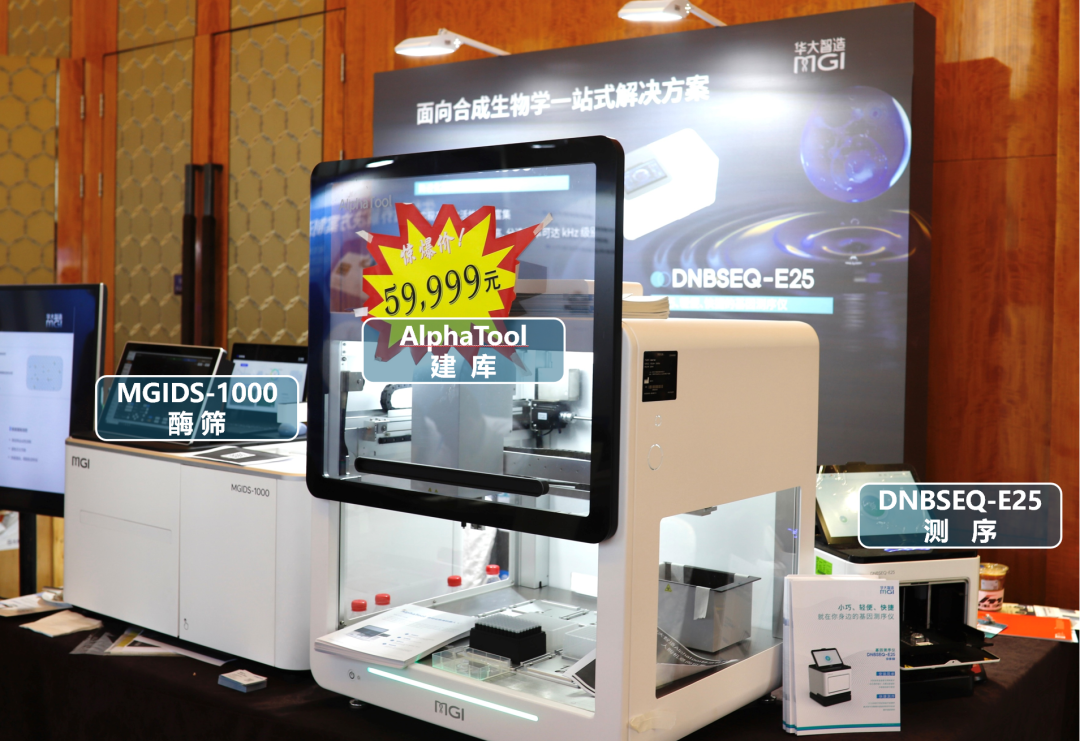 2024年4月18日,SynBio China第二届中国合成生物学及生物制造年会暨BioMade China中国生物制造产业博览会在杭州举办。华大智造首次携合成生物学一站式产品组合亮相展会现场,包括不久前发布的新品AlphaTool自动化移液机器人、便携型半导体基因测序仪DNBSEQ-E25,以及全新推出的千万级酶定向进化筛选系统——MGIDS-1000,打造从筛选到建库,再到最终的测序一站式合成生物学产品组合。