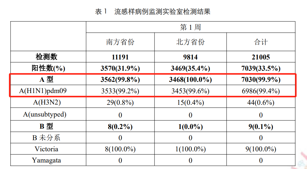 数据截图自中国国家流感中心2025年第1周流感监测周报