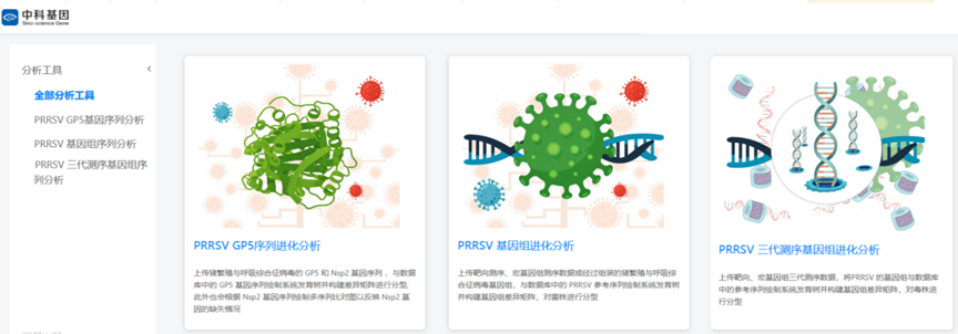 目前该分析系统包括:PRRSV GP5一代测序序列分析、PRRSV二代测序基因组序列分析、PRRSV三代测序基因组序列分析模块,可自动化生成检测报告。