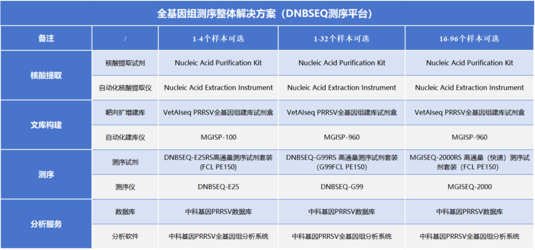 为应对复杂样本及多应用场景,中科基因针对不同类型的样本和复杂的应用场景提供全面的PRRSV基因组自动化整体解决方案。