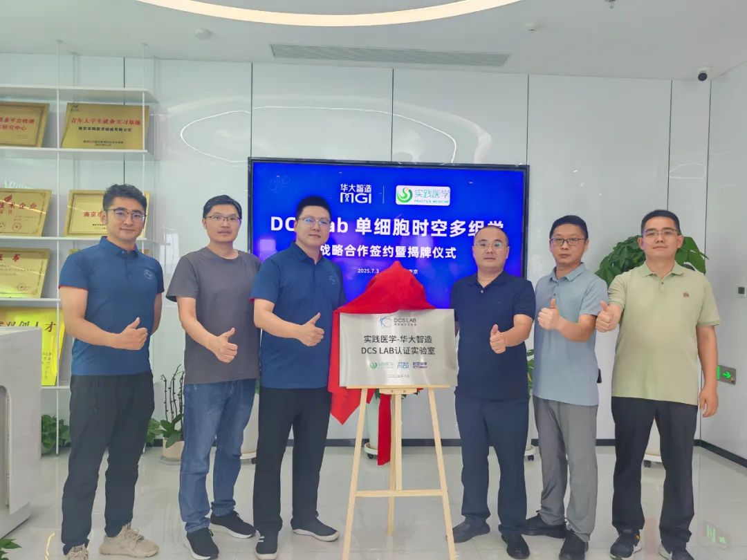 2025年7月3日,南京实践医学科技有限公司(以下简称“南京实践医学”)与华大智造宣布“实践医学-华大智造DCS Lab认证实验室”正式揭牌启用,双方达成战略合作关系,将携手推动细胞组学、时空组学等前沿领域的发展和成果转化,进一步为生命科学及医学健康领域的研究者提供更高效、更精准的单细胞多组学整合解决方案,为基因科技领域注入全新动能。