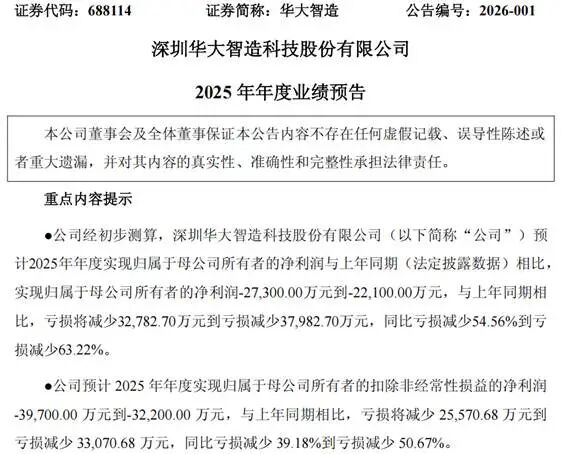 1月25日,深圳华大智造股份有限公司(688114.SH,以下简称“华大智造”)披露了2025年年度业绩预告。在公告的字里行间,“亏损收窄六成”位置醒目,然而细读全文,并纵观公司近年来业绩表现,这份公告更像是一份止损声明。为何一家硬核科技公司的减亏动力不再源于市场份额的扩张,而是依赖于税务冲回、汇兑收益与费用的自我收缩?